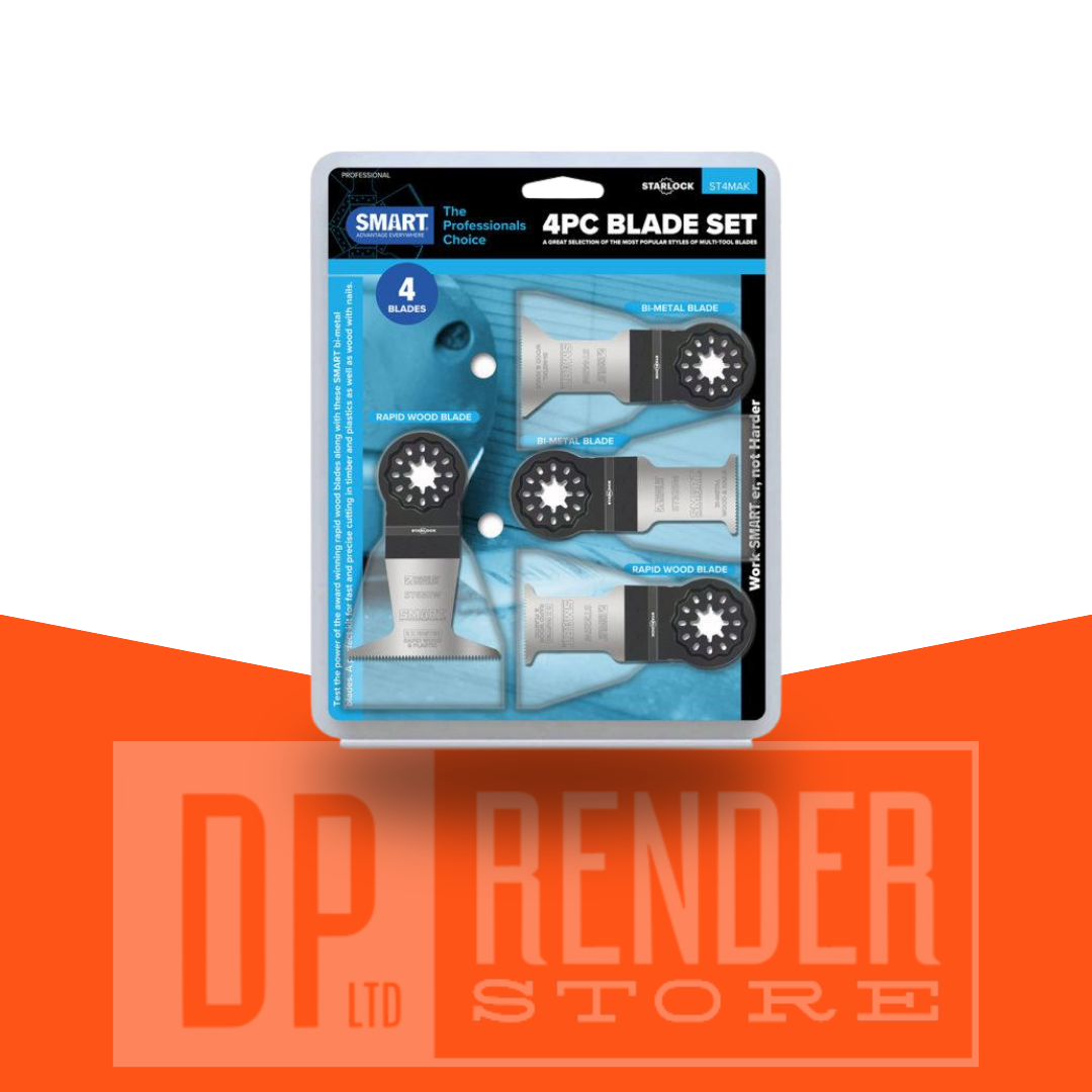 A Professional Series four-piece multi-tool blade kit including accessories suitable for a range of cutting applications including wood, hardwood, plastic, nails, non-ferrous metal, drywall and more. The kit includes rapid wood blades designed for very fast and precise cuts in wood and plastic. Compatible with Starlock fitment multi-tools. Made in EU. The Professional Series is a robust and versatile range of high-quality multi-tool blades and accessories designed specifically for the professional user. Maximise the potential of your multi-tool with the wide range of cutting, sanding and grinding accessories in the Professional Series.